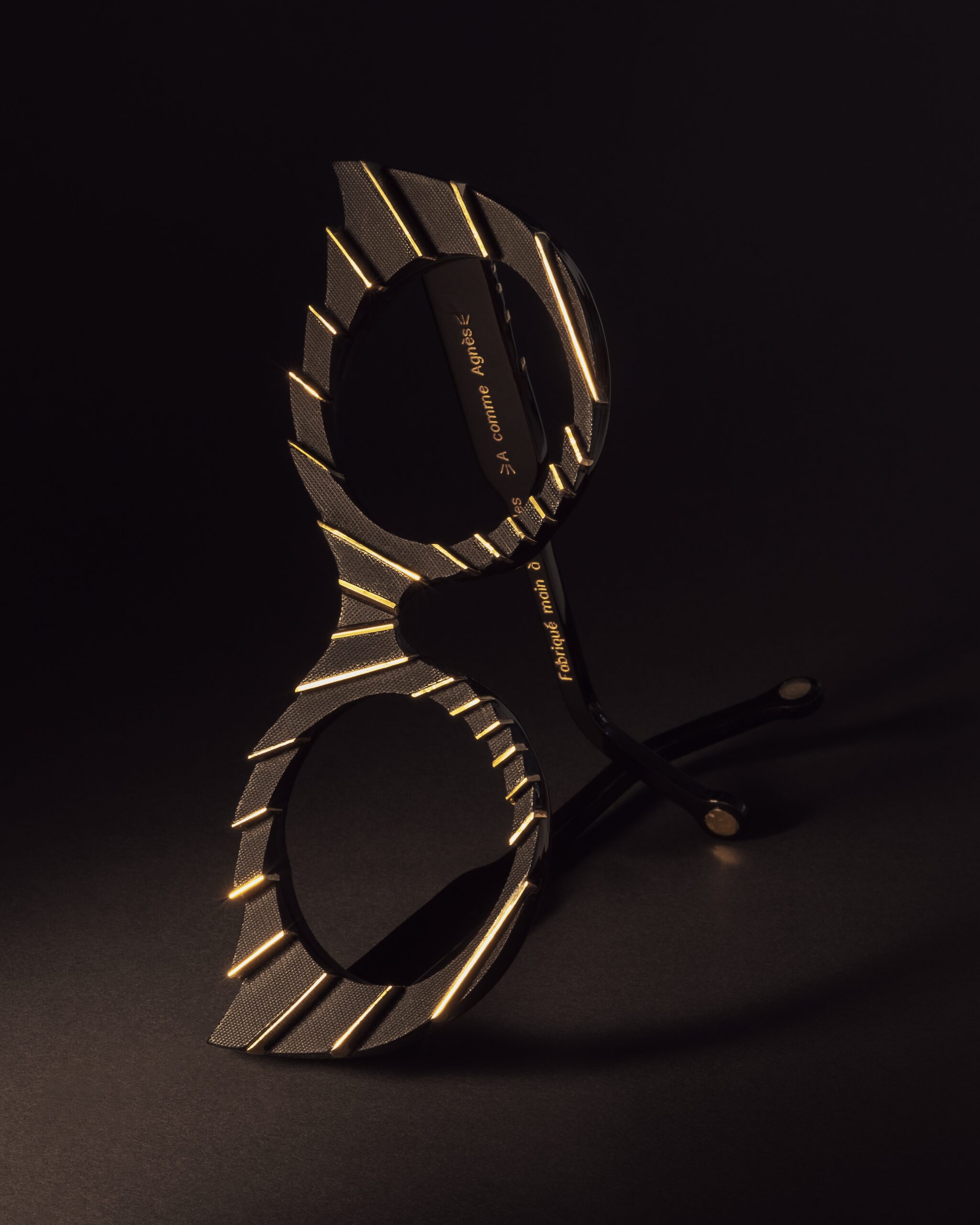 Une fois les éventuelles corrections faites, il est temps de valider définitivement les couleurs, le relief, les inserts, le choix des rivets et des branches. Et comme si tous ces éléments ne suffisaient pas à faire de vos futures lunettes une œuvre unique, il vous sera proposé d’aposer sur l’intérieur d’une branche la gravure de votre choix.